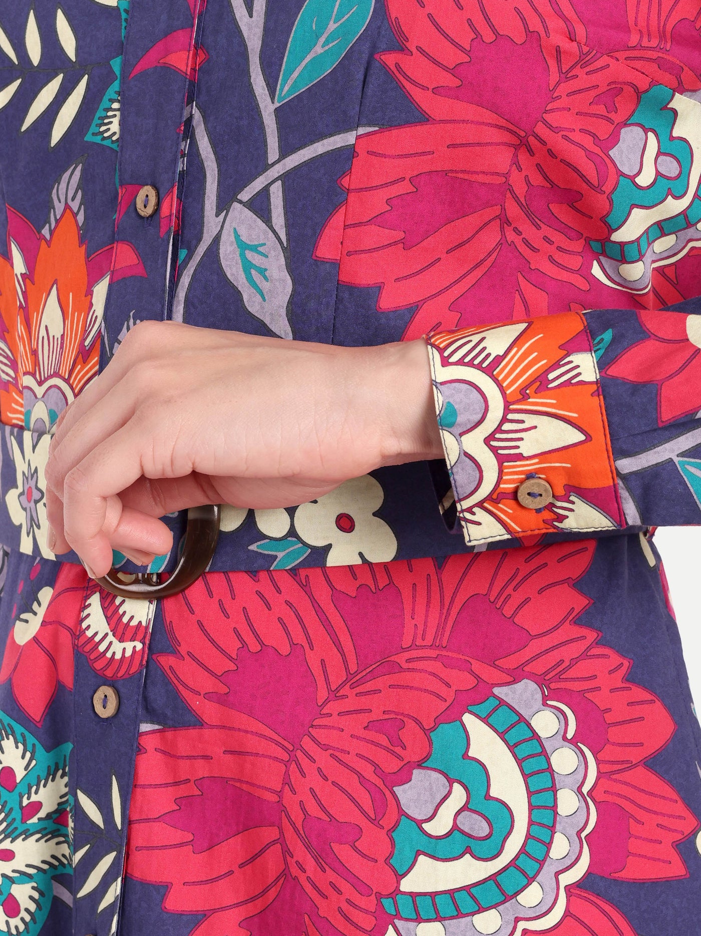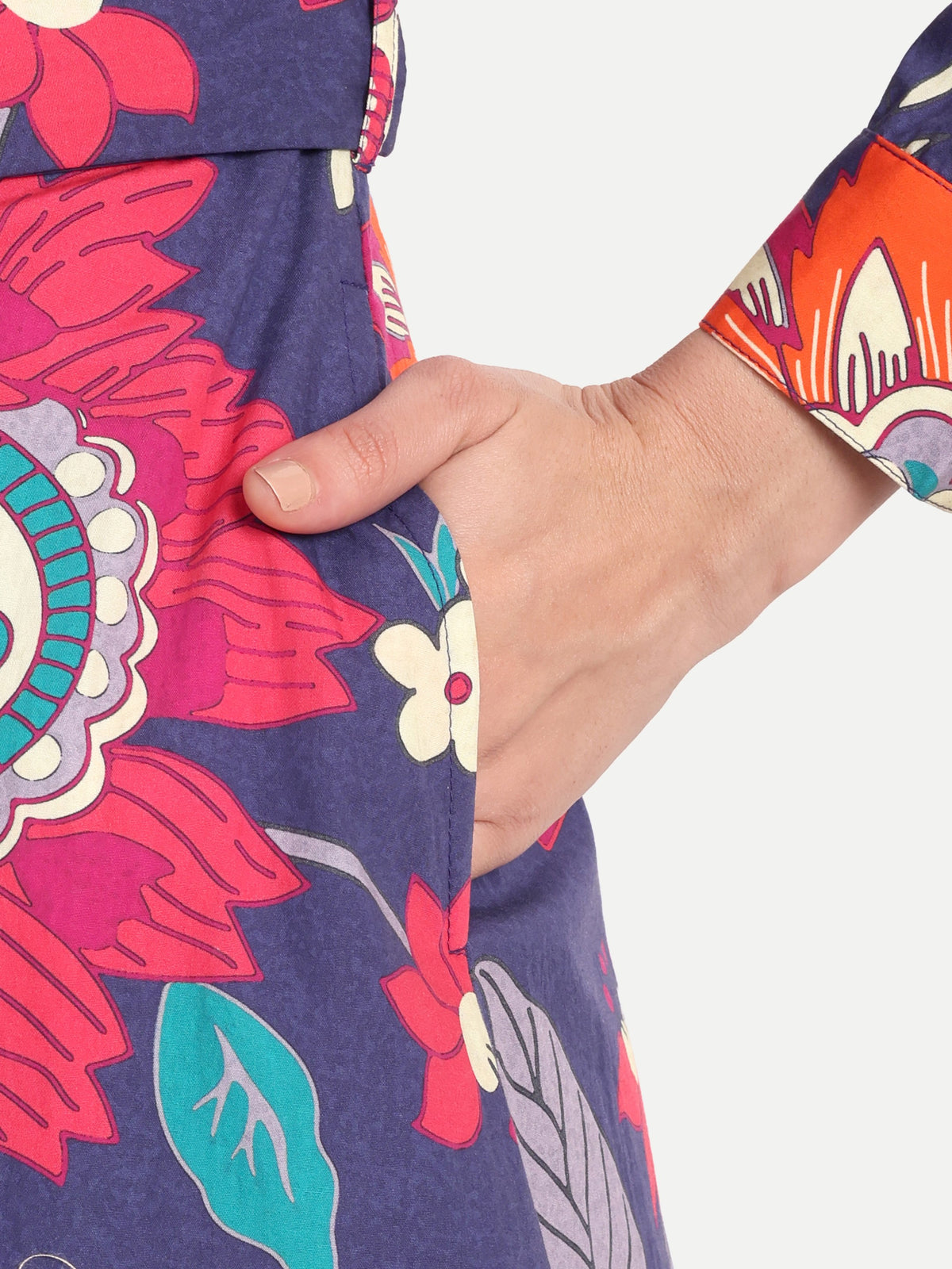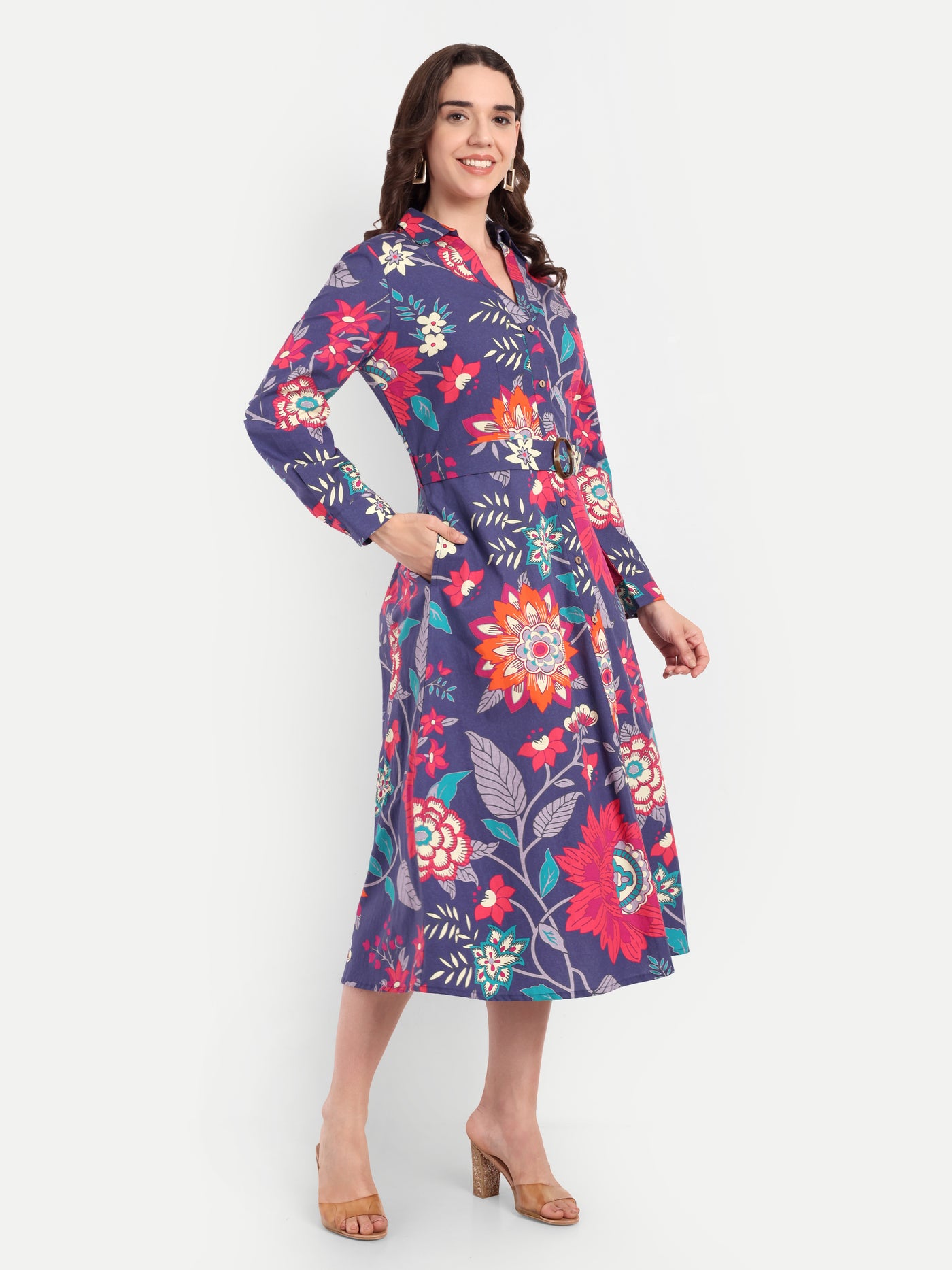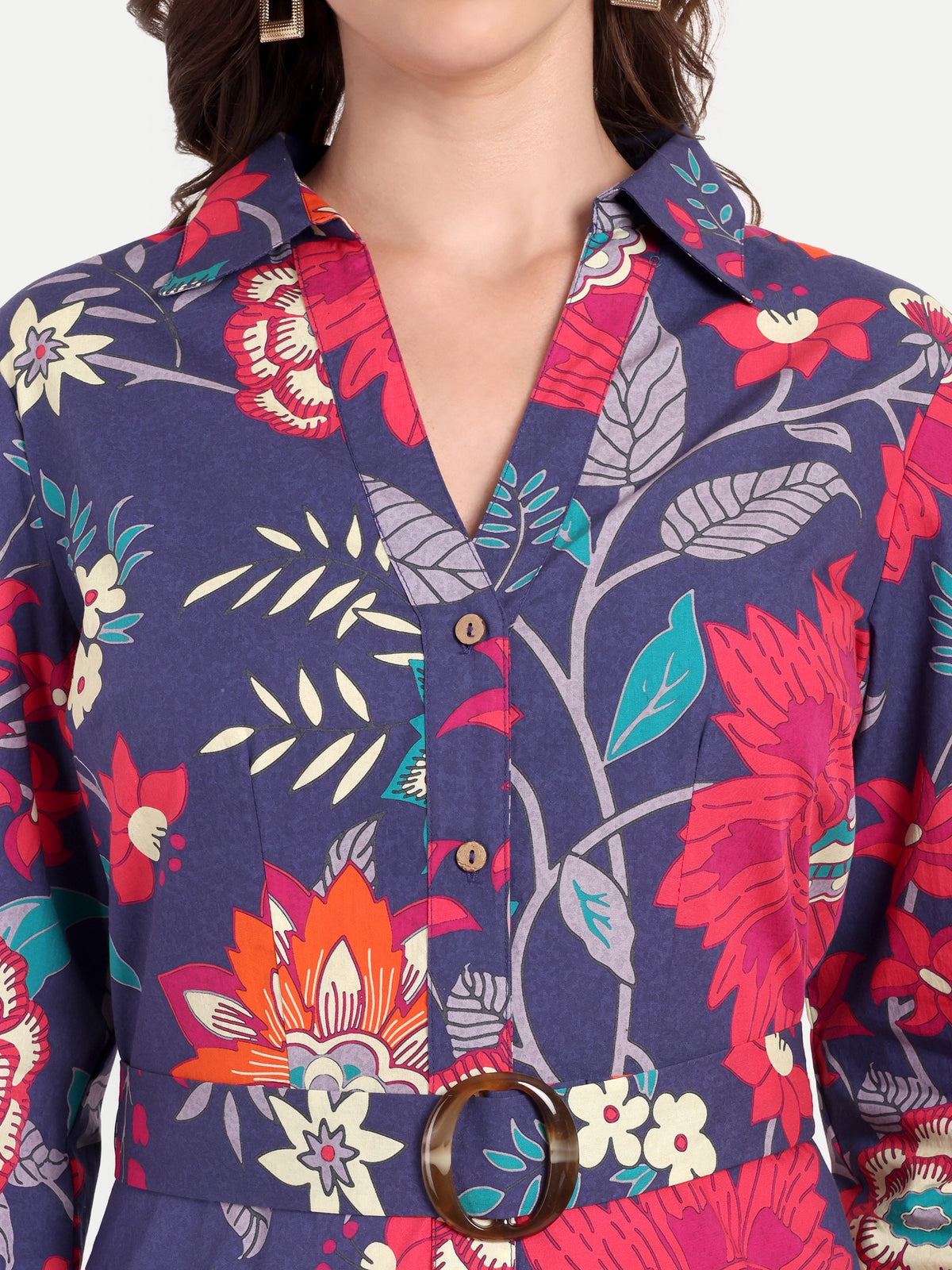 Midnight Bloom Belted Shirt Dress