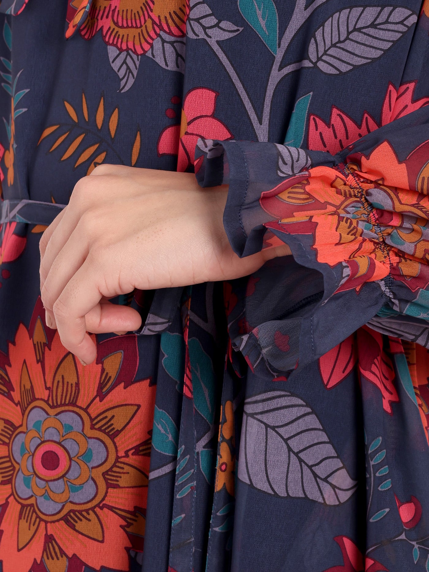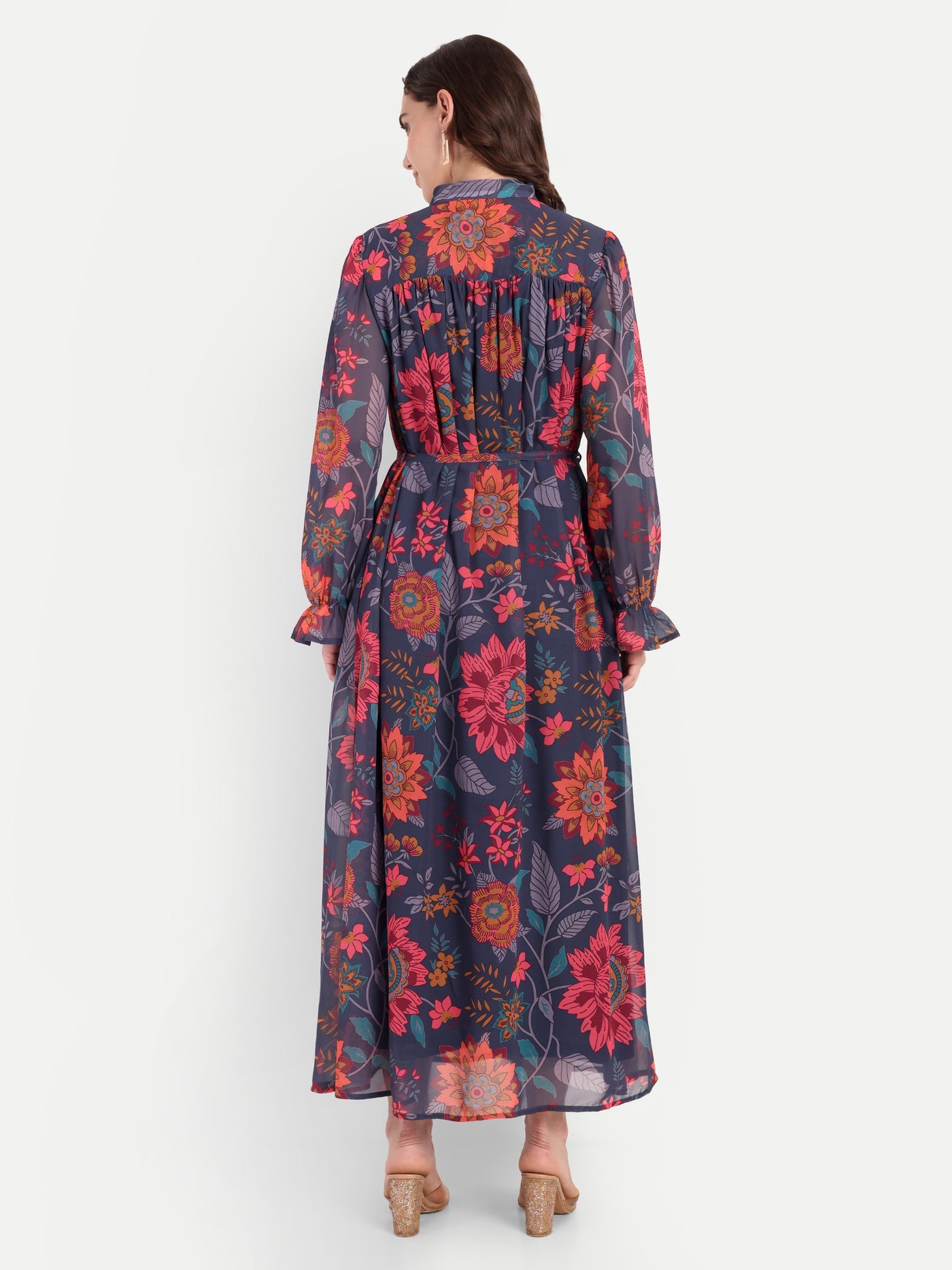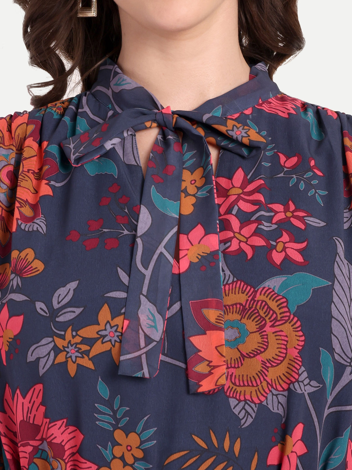 Midnight Bloom Tie-Neck Maxi Dress