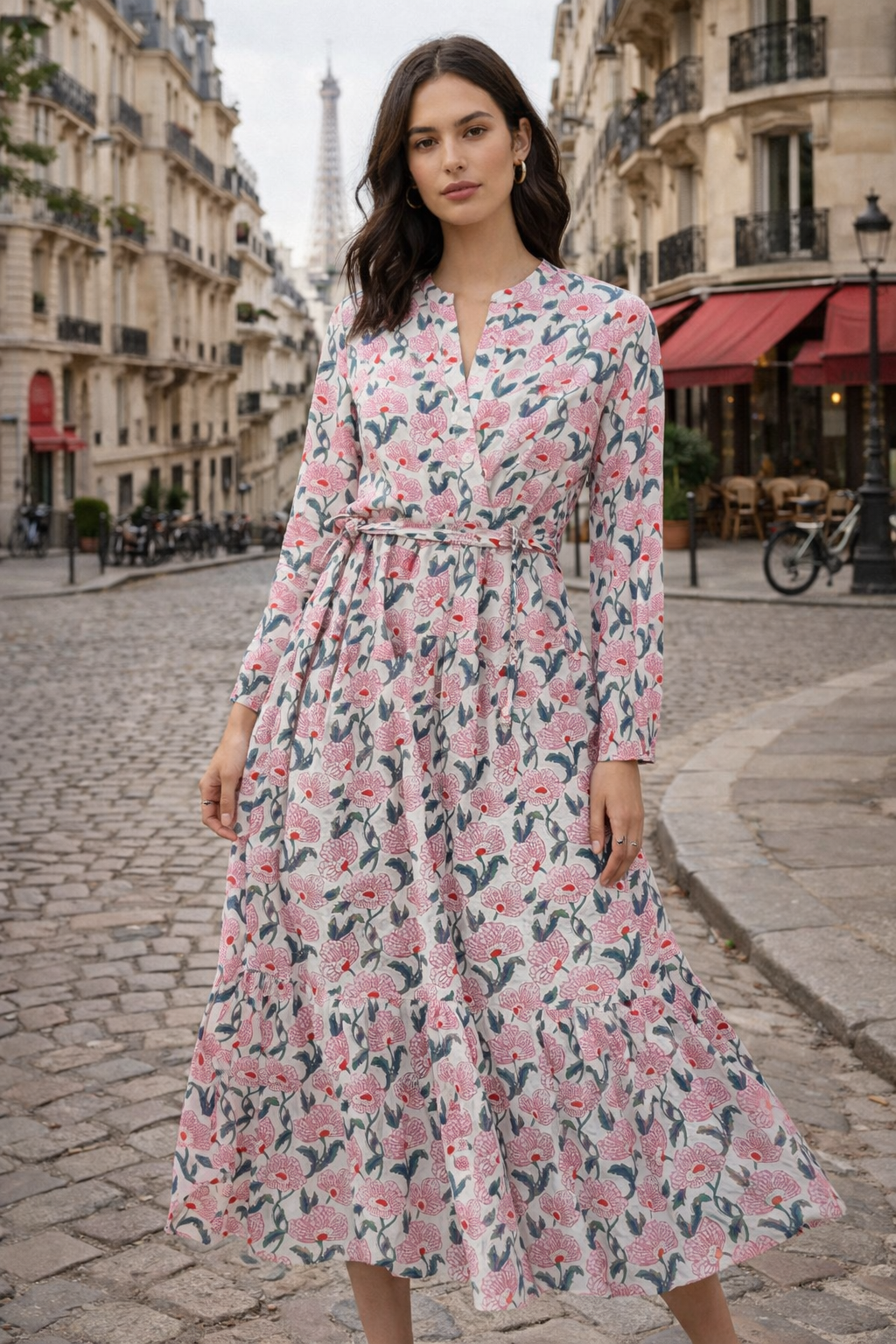 Pink Lilies Maxi Dress - Min 6 Pcs / S